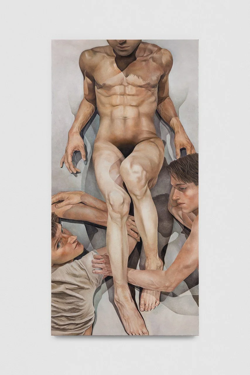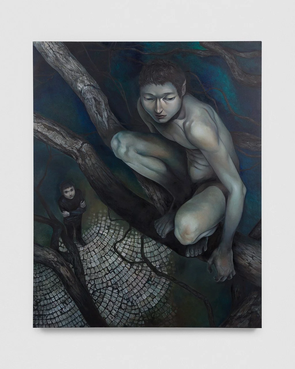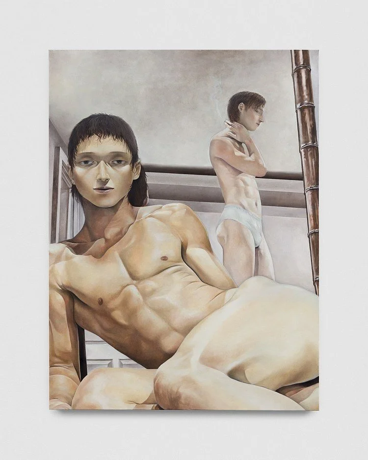 Tommy Xie’s practice navigates the complexities of queer identity through the lens of his Chinese upbringing and the social and cultural experiences shaped by Western society. His paintings dwell in intimate moments where bodies, gestures, and sensations materialize into poetic and often surreal narratives—where queer bodies brush against one another, and sensuality becomes a form of subversion. Through layered compositions in melancholic hues, Xie’s work examines the nature of selfhood and the collaborative acts of queer mothering. Each painting becomes a site of encounter—between past and present, self and other, desire and care.